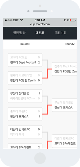 フットプラー・カップはサッカーリーグとトーナメントを簡単に管理できるサービスとして大会運営がさらに容易になります。また、プロリーグのようにチームと選手の記録をさらに体系的に見せてくれます。大会を運営中だったら今すぐフットプラー・カップを利用してください。